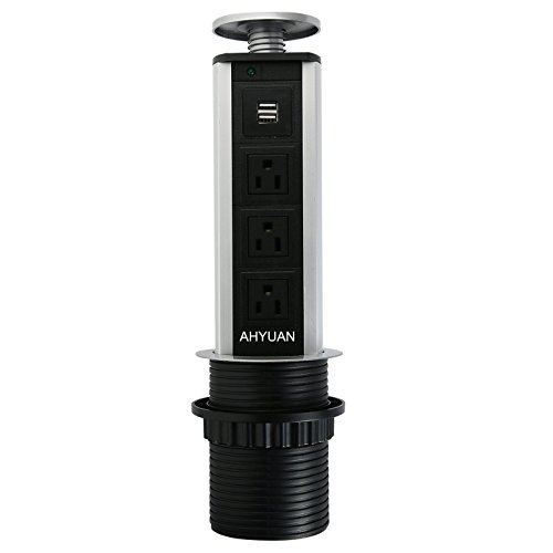 AHYUAN Retractable Pulling Pop Up Power Strips USB Multi Outlet Socket Tabletop Safe Hidden Outlet Adapters for Office Meeting Room Kitchen and Home Electronics Devices(3-Outlet with 2 USB Ports)