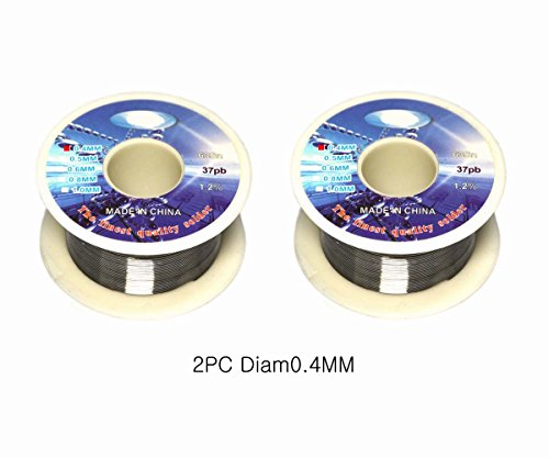 LampVPath [2-Packs] Solid Solder 0.4mm 0.016" Dia Flux Core 63% Tin 37% Lead Long Wire Reel