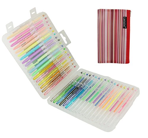 Lanxivi Premium Gel Color Pens 48 color Set /Glitter, Neon , Pastel & Metallic for Scrapbooks, sketch , Party Invites with Pens Pouch (48)