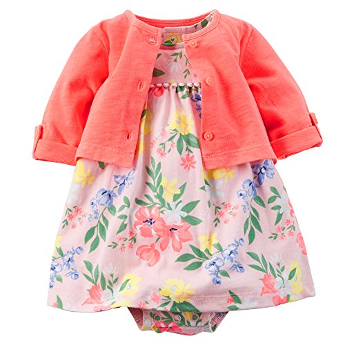 Carters Baby Girls 2 Piece Cardigan and Bodysuit Dress Set (6 Months, Peach)
