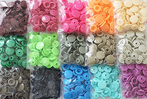 KAM snaps Refill Pack: 150 KAM Snaps Size 20 Glossy in 15 Different Colors Plastic Snaps No-Sew Buttons Fastener Setter Hand Tool for Cloth Diapers Clothing (Refill SP)
