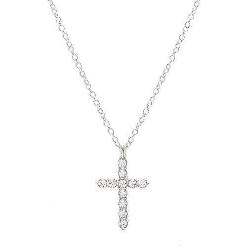 Claire's Girl's Silver Crystal Cross Pendant Necklace