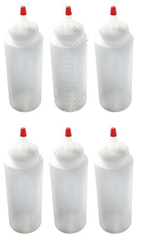 Plastic Squeeze Condiment Bottles with Red Tip Cap 12-ounce Set of 6 by The Cook's Connection