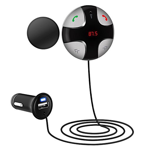 Bluetooth FM Transmitter Adapter Car Kit with USB Charger LED Display TF Card Slot Hands - Free Calling and Magnetic Base Included-Silver