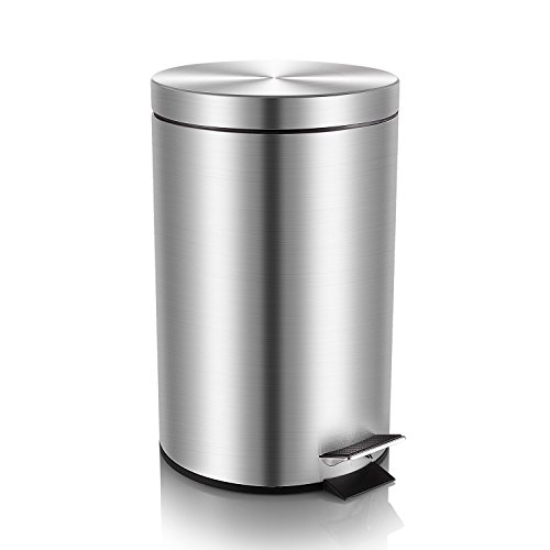 Malmo Small Round Stainless Steel Trash Can with Lid and Inner Bucket,Fingerprint Proof Brushed Finish,5L/1.3Gallon
