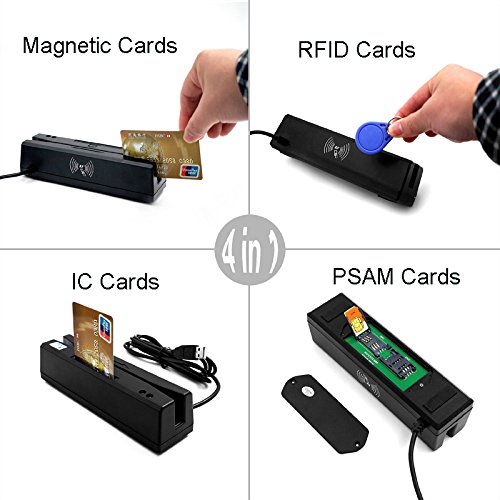 ZS160 4-in-1 USB Credit Card Reader Writer Magnetic Stripe Card Reader(not supports write)+EMV Smart IC Chip/RFID NFC/PSAM Card Reader Writer Encoder + Free Software