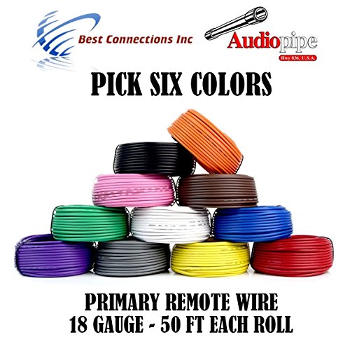 18 GA 50 Feet Audiopipe Primary Power Wire Remote Car Audio Home (6 Rolls)