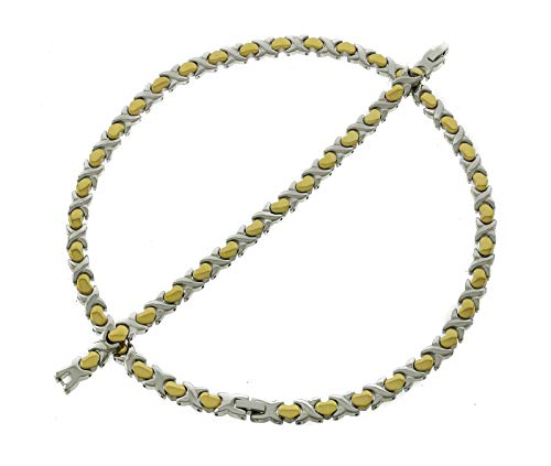 Hugs and Kisses Stainless Steel Stampato Necklace and Bracelet Set Two Tone Heart Style 18''