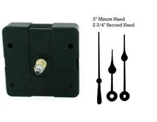 Quartz Clock Movement Kit with 3" Black Spade Hands for Dials up to 1/4"