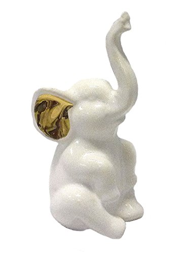 Caffco White Ceramic Elephant Ring Holder with Gold Accents - 4" high
