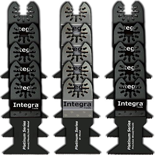 Integra™ Tools Platinum Series Blades 15Pcs Oscillating Tool Accessory Kit MultiTool Saw Blade for DeWalt Porter Cable Black&Decker Fein