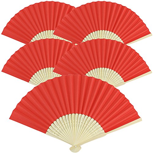 Just Artifacts Folding Paper Hand Fan 8.25-Inch Red (5 pcs)
