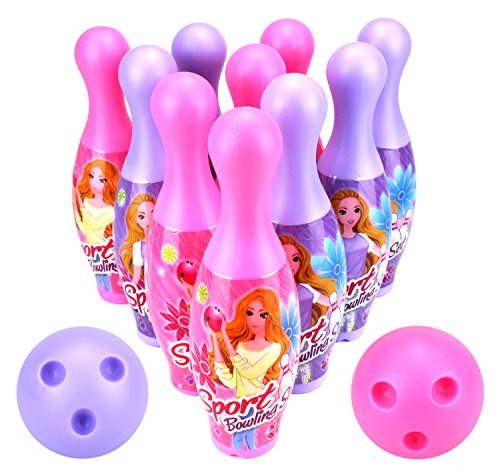VT Princess Sport Children's Big 12 Piece Toy Bowling Set w/ 10 Pins, 2 Bowling Balls