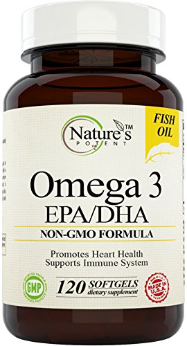 Nature's Potent - Omega 3 Fish Oil, 100% Non-GMO Supplement with EPA/DHA - Burpless 120 Softgels
