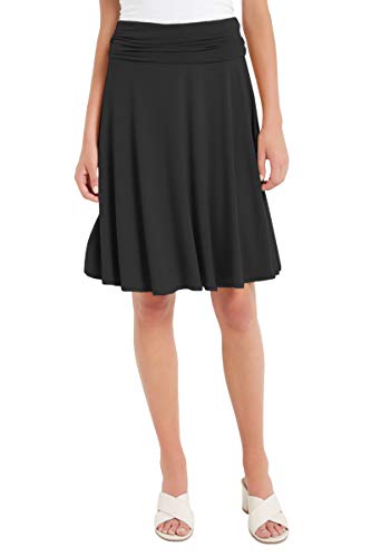 12 Ami Solid Basic Fold-Over Stretch Midi Short Skirt Black 2X