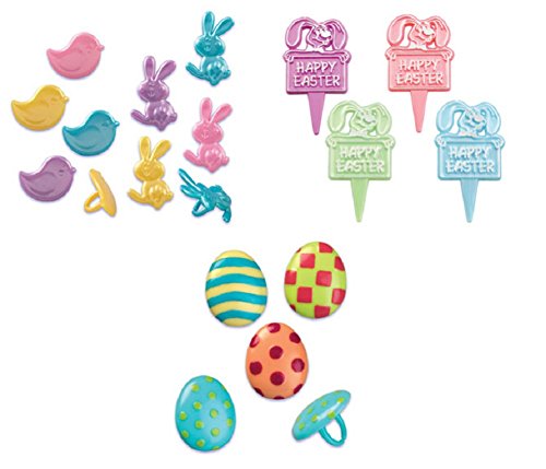 Bunny, Chick and 3D Egg CupcakeTopper Rings and Happy Easter Bunny Word Picks