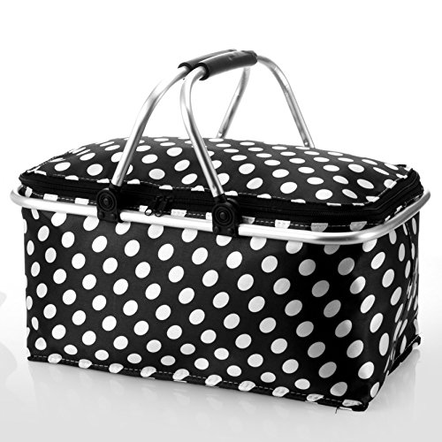 U'Artlines Insulated Collapsible Market Picnic Basket Cooler Zip Closure Basket with Carrying Handles for BBQ's,Grocery Shopping,family picnic (Black dots)