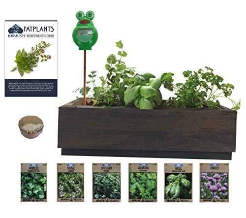 Herb Garden Cedar Planter - Complete Herb Garden Kit - Indoor Garden Seeds Growing Kit - Grow Cooking Herbs Basil, Chives, Oregano, Parsley, Thyme & Cilantro - Choice of 2 Colors