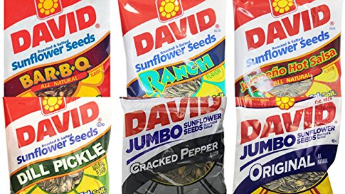 David Sunflower Seeds 5.25 oz Variety Pack (Pack of 6) 1-Bag Cracked Pepper, Original, Dill Pickle, Jalapeno Hot Salsa, Ranch, BBQ