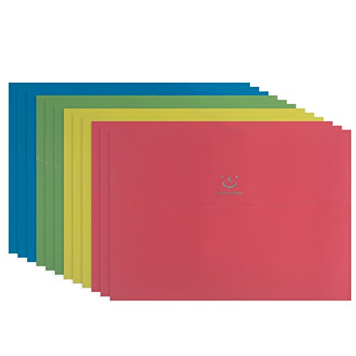 Fasmov Smile Letter Size Booklet Plastic Expansion Envelope Folders with Velcro, Poly Envelope,Document Folder,Pack of 12 (3Yellow,3Blue,3Green,3Pink)