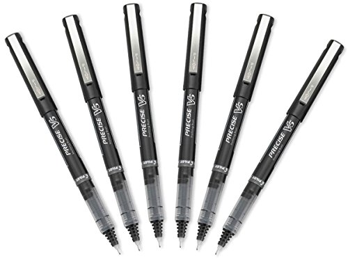 Pilot Precise V5 Stick Rolling Ball Pens, Extra Fine Point, Black Ink, 6 Pens 35334