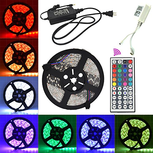 LHI 5050 RGB LED Strip Light Kit (Waterproof 16.4ft 300LEDs, Color Changing SMD5050 RGB, LED Tape Light, Including a 44-key RGB Remote Control & a 12VDC/5A Power Supply)