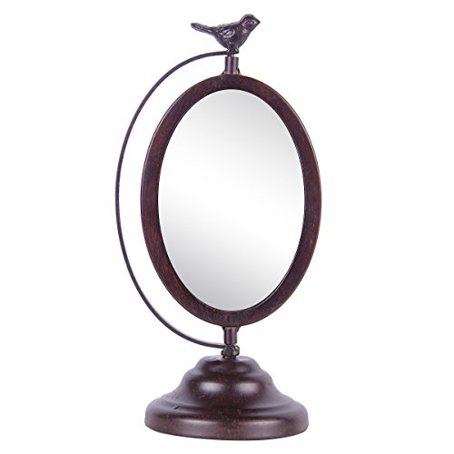 NIKKY HOME Shabby Chic Metal Oval Desktop Vanity Makeup Mirror with Bird, Black