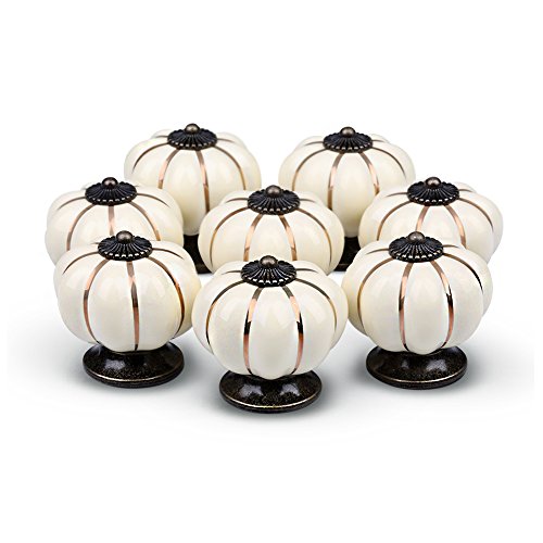YDO(TM) Pumpkin Knobs Ivory Kitchen Cabinet Pull Ceramic Handle 8pcs