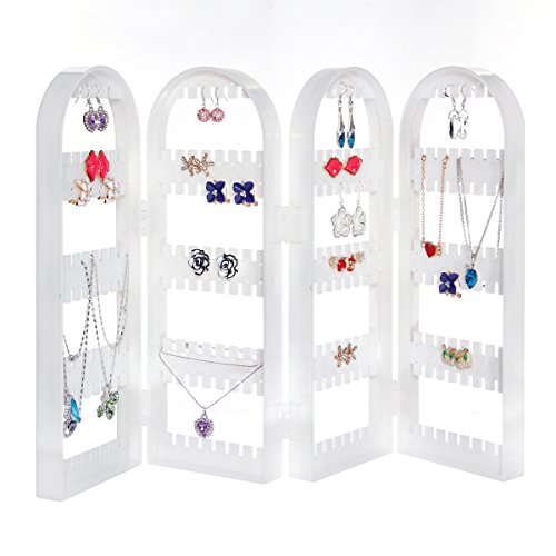 Valdler Foldable Acrylic 120 Pair Earrings Screen Jewelry Display Showcase Necklaces Bracelets Holder Organizer Stand White
