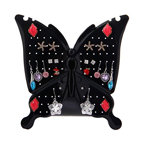 Valdler Butterfly Acrylic 48 Pair Earrings Display Showcase Jewelry Holder Organizer Stand Black