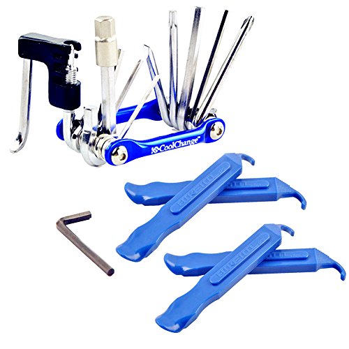 ziyue Bicycle Tool Multi-Function Bike Cycling Bikes Tires Tool,Mechanic Repair Tools Kits With 4 pcs Tire Pry Bars Rods (Blue tool set)