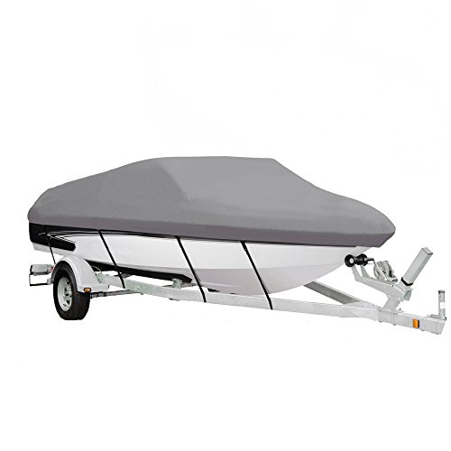 Ancheer Boat Cover Heavy Duty 210D Marine Grade Polyester Canvas Trailerable Waterproof Runabout Boat Cover, Fits V-Hull,Tri-Hull,Fishing Ski, Full Size Boat Cover With Carrying Bag