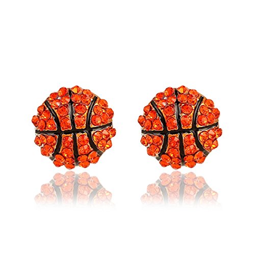 Winter's Secret Red Fashion Competitive Match Sports Basketball Shape Diamond Accented Stud Earring