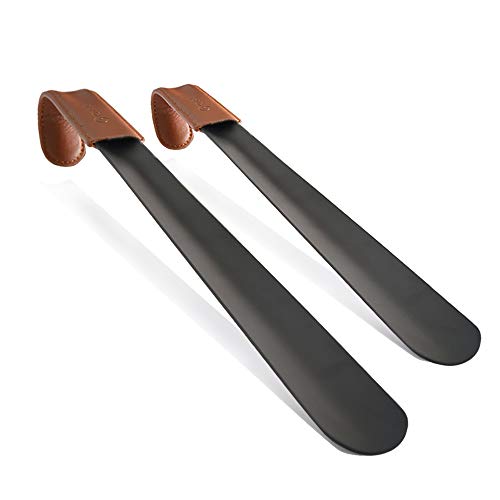 ZOMAKE Long Handled Shoe Horn with Leather Strap Stainless Steel Shoehorn for Boots
