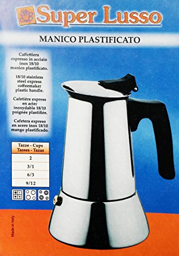 "Super Lusso" Coffee Maker 9/12-Cup, 18/10 Stainless Steel [ Italian Import ]