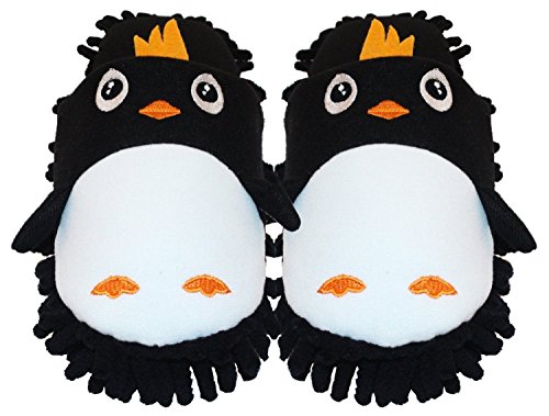 HomeIdeas Women's Plush Cute Animal Microfiber Mop Cleaning House Slippers, Shoes For Women 8-9 (L, Black/White Penguin)