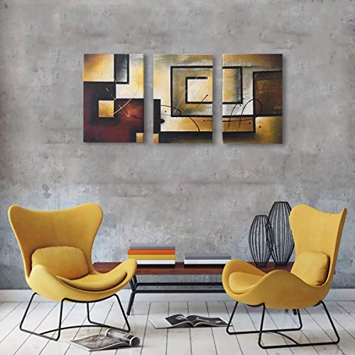 Abstract Geometry Oil Painting Wall Art Hand Painted Retro Vintage Handmade Drawing Handwork Artwork Antique Picture for Bedroom Living Room Office Decoration Modern Home Decor Framed,16"x24"x3Pcs Set