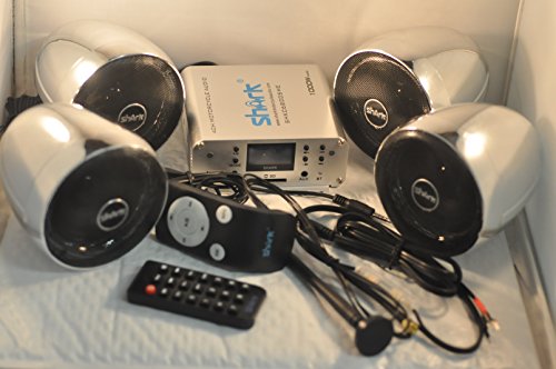 shark SHKC6800SME 1000 watt 4 ch motorcycle boat audio system w/ 2 remotes, FM, SD, USB, Bluetooth, sharing (Chrome)