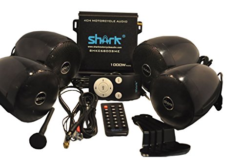 Shark 1000 Watt 4Ch Motorcycle Boat Audio System with 2 Remotes, FM, SD, USB, Bluetooth, SHKC6800SME (Black)