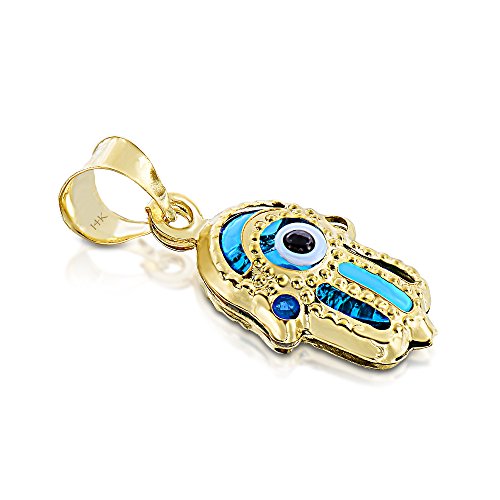 Unique Royal 14 Karat Gold 3-D Hamsa and Evil Eye Pendant.