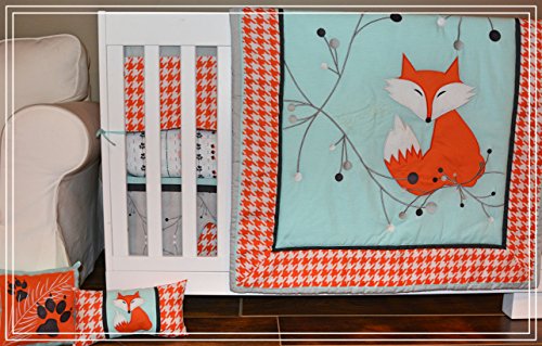 DK Leigh Fox Houndstooth 5pc Crib Bedding set Mint / Orange / Grey