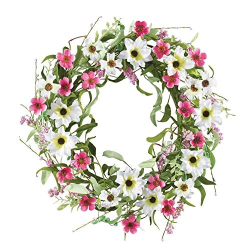 Collections Etc Pink and White Wildflower Spring Wreath, Pink
