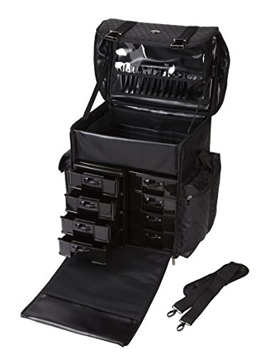 Seya 19.5 Inch Soft Nylon Professional Artist Rolling Wheeled Trolley Makeup Train Case Cosmetic Organizer W/ 8 Drawers (Black Quilted)