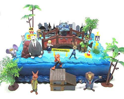 ZOOTOPIA 19 Piece Birthday Cake Topper Set Featuring Judy Hopps, Nick Wilde, Major Lionhart and Themed Decorative Accessories - Figures Average 1.5" to 3" Tall