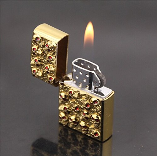 Gold Vintage Petrol gas Cigarette Lighter many small Skull Retro metal Lighters
