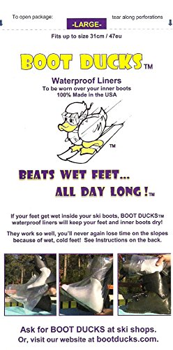 BOOT DUCKS Ski Boot Waterproof Liners, If You use Boot heaters, Boot dryers or Boot Warmers get Large fits Boots up to 31cm / 47eu. Keep FEET Dry All Day. Also in Medium, fits Boots up to 26cm / 41eu