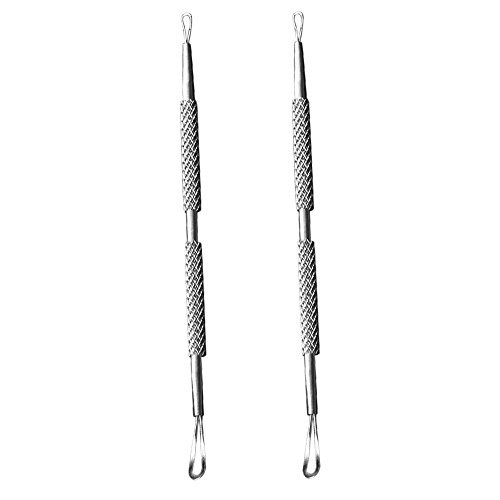 Sanwood 2Pcs Stainless-Steel Blackhead & Blemish Remover, Dual Loop Acne Pimple Extractor (Silver)