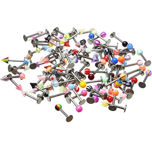 Oasis Plus 100PCS 16g 316L Surgical Steel Monroe Labret Ring Lip Chin Stud Tragus Earring Bar Body Piercing Kit