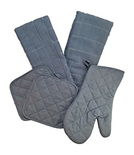 Kitchen Towel Set 5 Piece Coffee Theme Design That Includes 2 Dish Towels, 2 Pot Holders, and 1 Oven Mitt