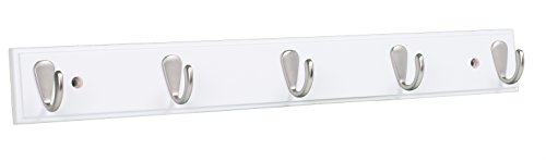 BirdRock Home Modern 5 Hook Coat Rack | White Finish | Satin Nickel Hooks | Home Organization